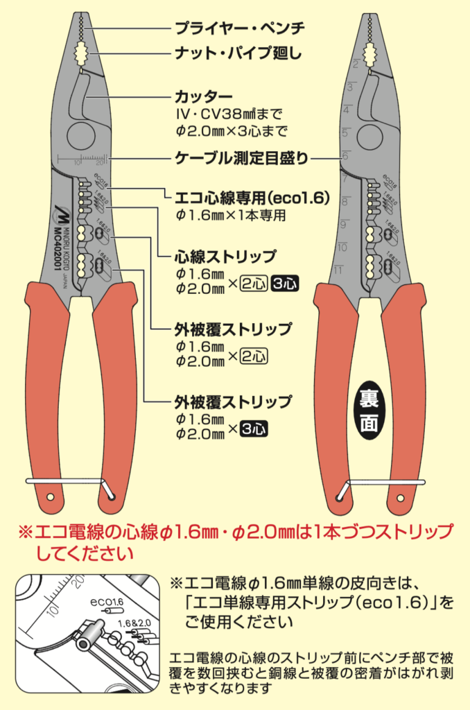 - 掴む・切る・ストリップ、3つの作業がこれ一丁でOK!